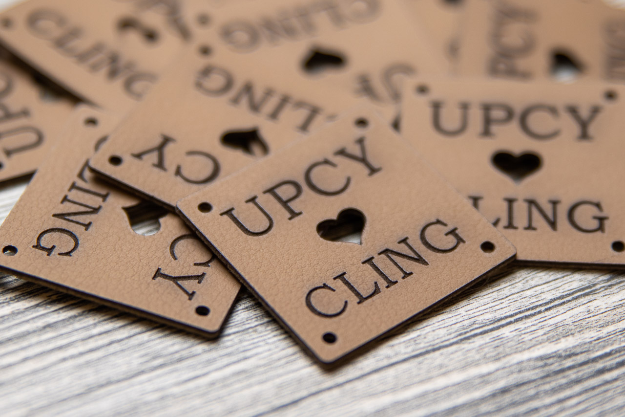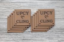 Il set contiene 10 etichette quadrate con la scritta incisa a laser "UPCYCLING".