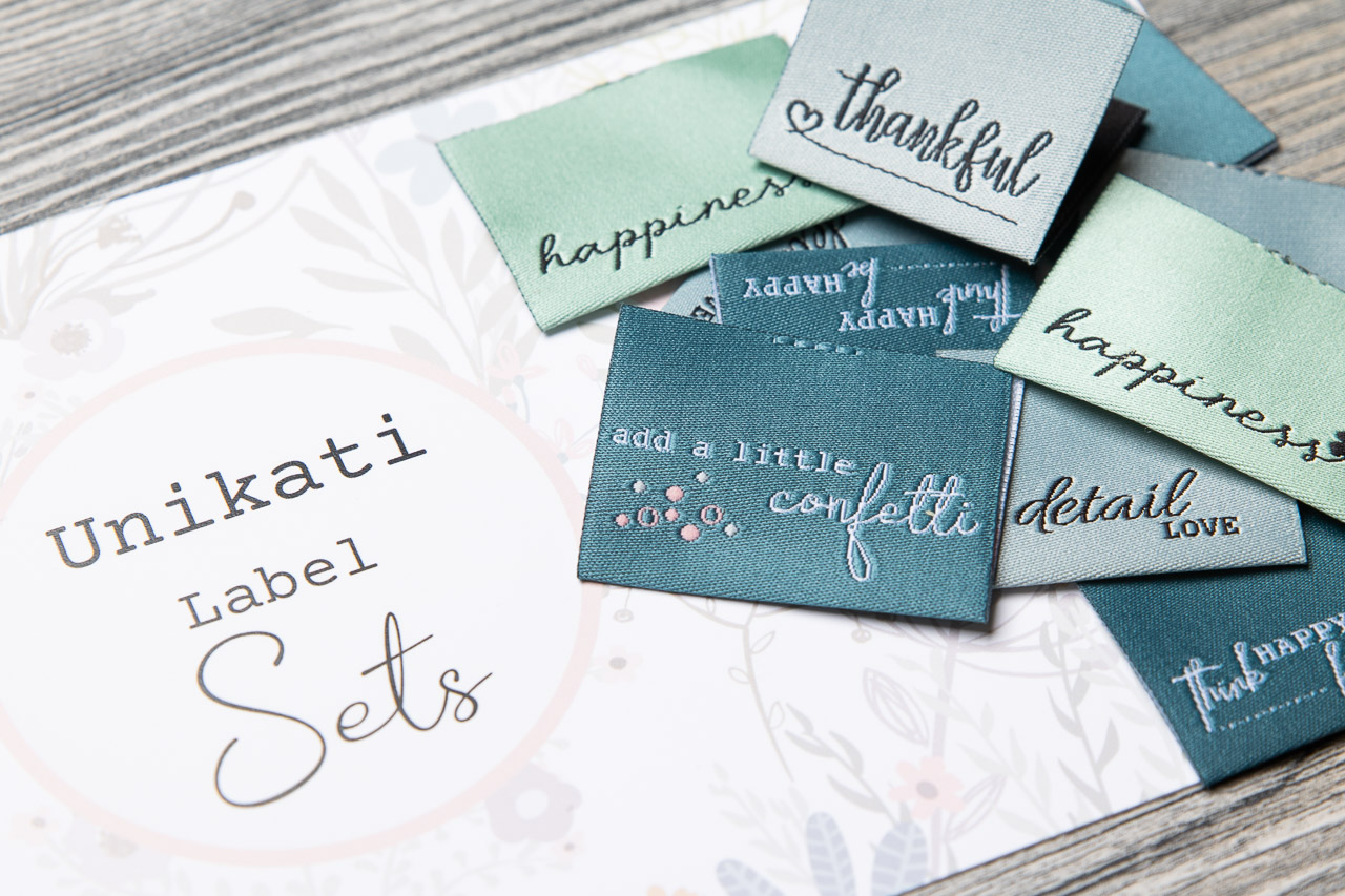 Colori bellissimi e un Design delizioso. Questo è ciò che contraddistingue questo set. Per i tessuti colorati puoi passare al set "happiness black and white". Qui troverai il design di queste etichette in bianco e nero. Meglio prenderli entrambi.