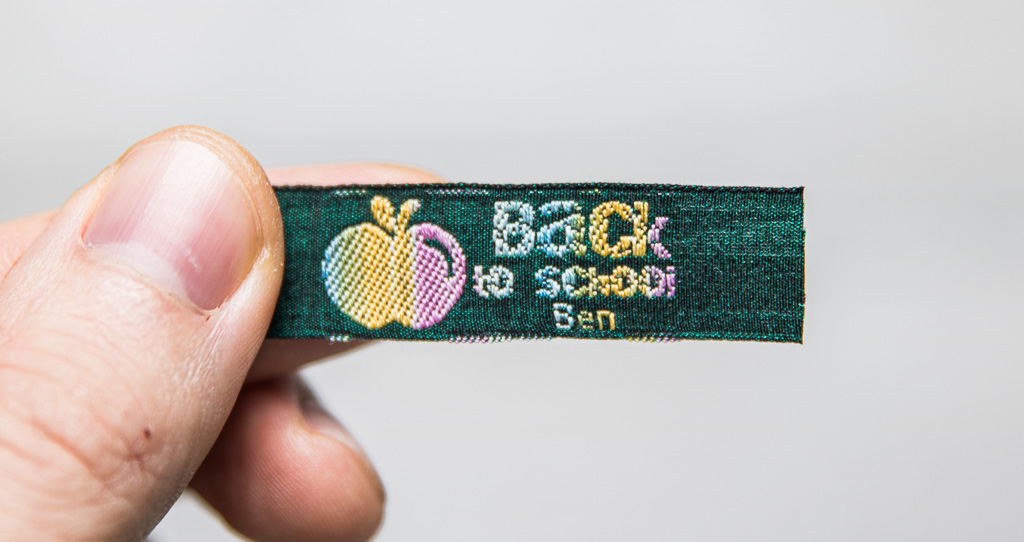 Etichetta in tessuto stampato con nome e motivo